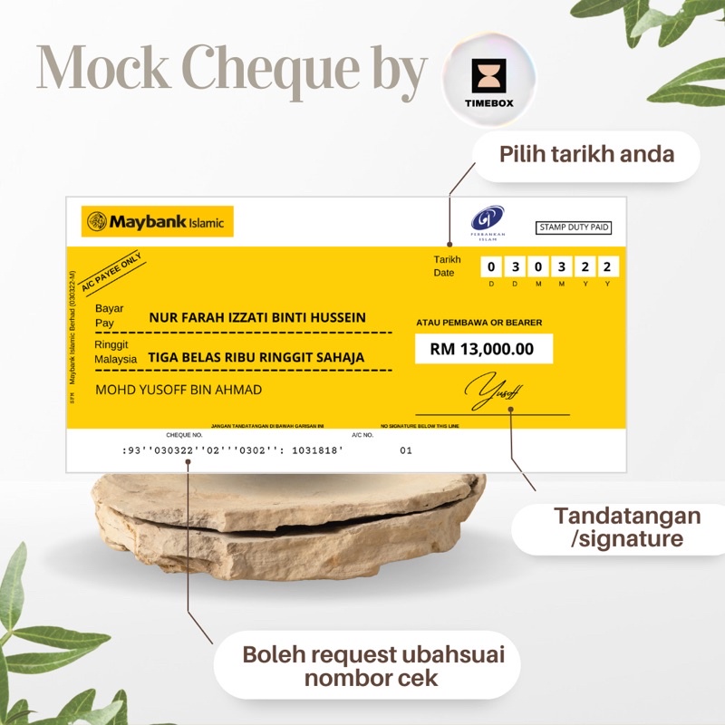 Rhb mock cheque / replika cek | shopee malaysia . Replika atau mockup cheque maybank untuk hantaran perkahwinan. Bagaimana nak buat replika cek untuk ditampal pada polistrem pada hari penyampaian. Biasanya dia orang ke kedai printing cetak banner dan tampal pada . (sila baca dengan teliti) digital produk/softcopy yang dihantar adalah bersama butiran pelanggan, bukan template kosong) mock cheque / replika cek digital . Replika cek hantaranfill form only · replika cek hantaran berbingkaifill form only · topper cakeunder constraction · wedding rubber stamp · wedding gift . Replika cek hantaran eksklusif, profile picture. Ok, ni suami (dulu tunang le) punya keslah ni. Mock up cheque reward points: Ramai orang tanya saya pasal nak buat replika cek. Ni kes nak jimat duit. Jika ada sebarang teguran sila berikan komen di bawah. Replika cek + tapak kosong :